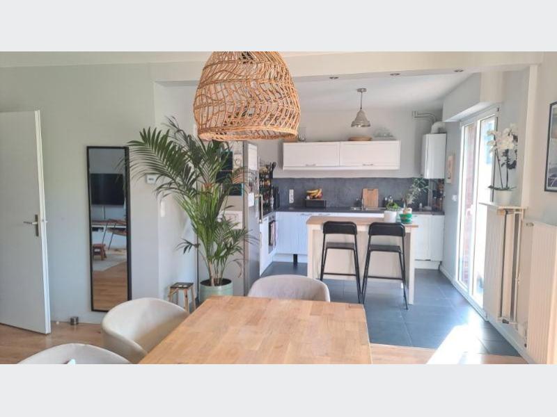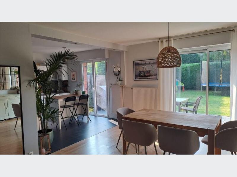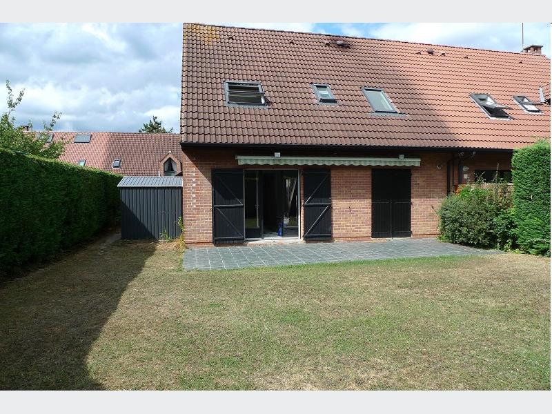 BONDUES CENTRE. Maison semi-individuelle d'environ 100 m² habitables. Séjour traversant + cuisine ouverte donnant sur la terrasse et le jardin orientés Sud. 4 chambres à l'étage + SDB. Garage 1 Voiture + parking. La maison est libre fin juillet 2026. NOUVEAUTE