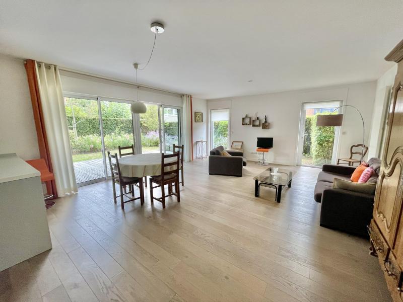 Le séjour de 35 m² et la cuisine ouverte donnent sur une terrasse de 27 m² et un jardin privatif. 3 chambres, SDB, SDD et WC. Garage box fermé au sous-sol. Belles prestations: parquet massif, persiennes électriques, chauffage électrique "double flux", abords particulièrement soignés. Calme et verdure à proximité de tout! NOUVEAUTE