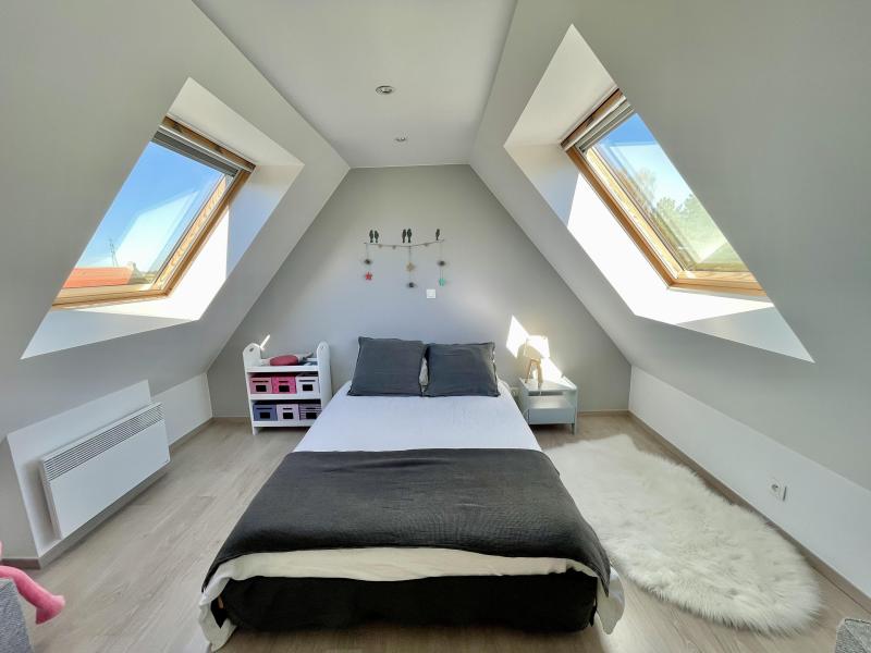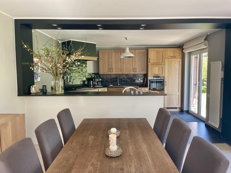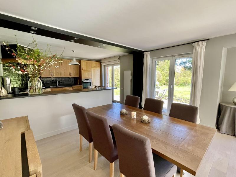 La maison propose une superbe pièce de vie de 50 m² avec parquet et cheminée insert, très lumineuse, ouverte sur une élégante cuisine entièrement équipée, idéale pour recevoir et partager des moments en famille.