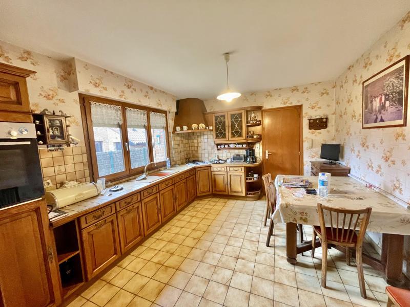 Entrée avec placard, belle pièce de vie de avec un séjour/salle à manger et cheminée feu de bois, grande cuisine separée. garage + parking devant la maison.
