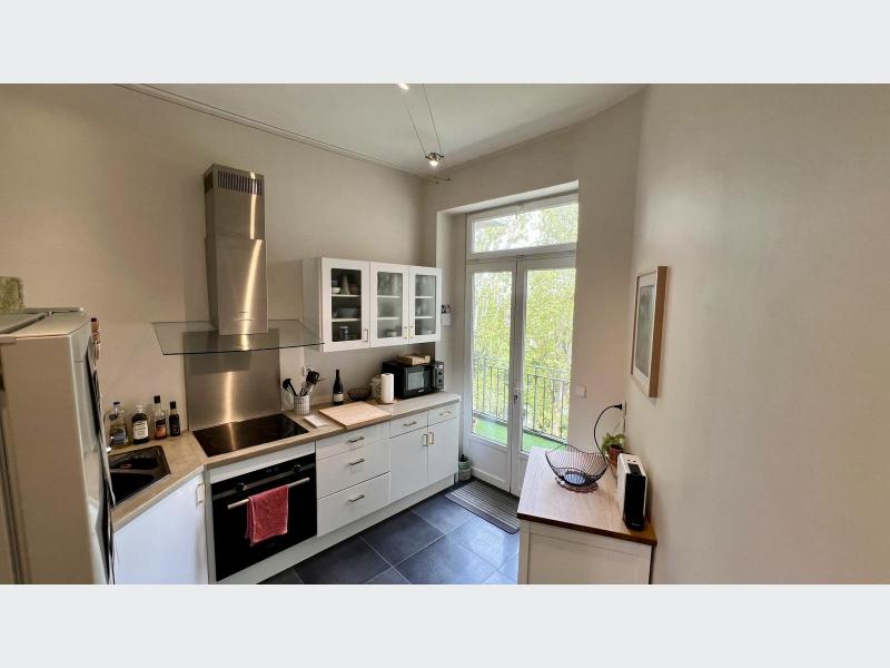 La cuisine équipée, prolongée par un accès à la terrasse, invite à profiter de moments privilégiés en extérieur.