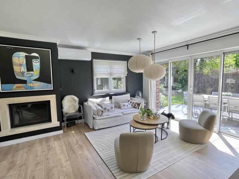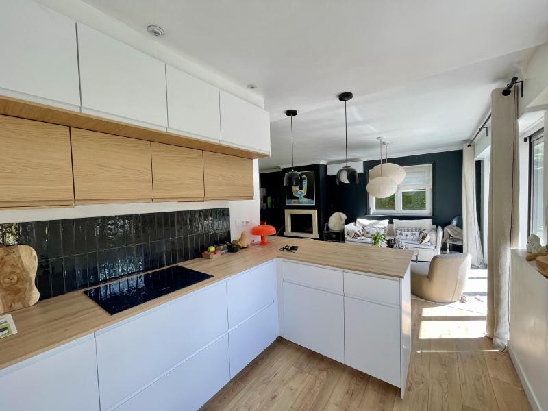 Édifiée sur une parcelle d'environ 500 m2 exposée sud-ouest, elle offre un bel espace de vie baigné de lumière comprenant un séjour et une salle à manger avec cheminée insert, ouverts sur une cuisine moderne et conviviale.